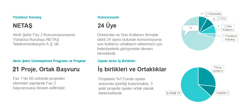 Enerji, bina yönetim sistemleri, acil durum yönetimi, sağlık, çevre ve atık yönetimi, otopark, ulaşım alanlarında entegre akıllı çözümlere odaklanan konsorsiyum, Türkiye’nin yüksek teknoloji ihracatını artırmaya katkı