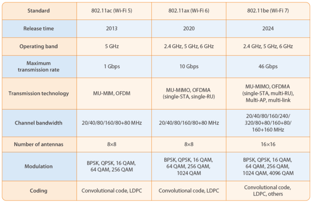 Standardizasyonu hala erken bir aşamada olan Wi-Fi 7 (802.11be), son derece yüksek verim sağlamayı ve düşük gecikmeli hizmetleri desteklemeyi hedefliyor. Teorik olarak, 4096 QAM, 320 MHz, 16×16 MU-MIMO ve EHT girişini içeren EHT PHY spesifikasyonu aracılığıyla yüksek verim ve düşük gecikme gerçekleştirilebilir. Ancak uygulamada, lisanssız spektrum, parazit ve yüksek ek yük nedeniyle, EHT PHY tek başına son kullanıcılar için önemli verim ve gecikme kazanımları sağlayamaz. Bu nedenle TGbe, gelişmiş EDCA, esnek OFDMA, çoklu bağlantı işlemi ve azaltılmış kanal sesi gibi diğer önemli yenilikleri de araştırıyor.